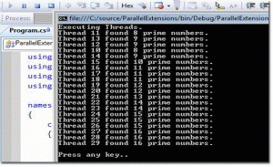 Now, let’s have a view into the cool parallel extensions Task class. It’s pretty much like the Thread implementations, and allows all the methods like, Wait(), CancelAndWait() etc to interact with the task. In addition, it will take advantage of the execution environment. That means, if you run this application into a Multi core processor, it will spawn more threads to carry out the tasks. Though, as I am using this into the VPC with a single core CPU, it’s using one thread instance to carry out the tasks. But now this is not my headache, to manage threads, or even thinking about it. All these concerns are taken care of by the Parallel Framework. Cool!