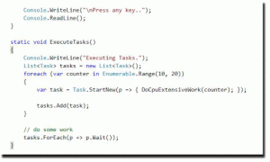 Well, this is even more interesting. It offers few iterative methods that automatically executes each iterations as a task and of course in parallel. Isn’t it a cool one?