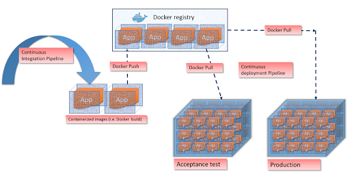 This feature makes it really powerful for Continuous deployment process. Where the build pipelines can output Docker image of the application component, push it to the registry (public or private hub) and in the production do a pull (as it recognizes deltas it will be faster) and run that new image. Pretty darn cool! In order to know more about Docker, visit their site.