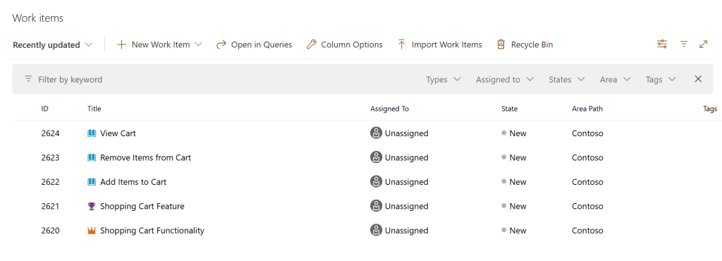 Sure enough, I see these work items created into the Azure DevOps project.